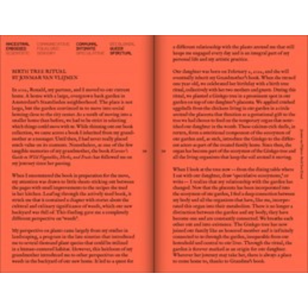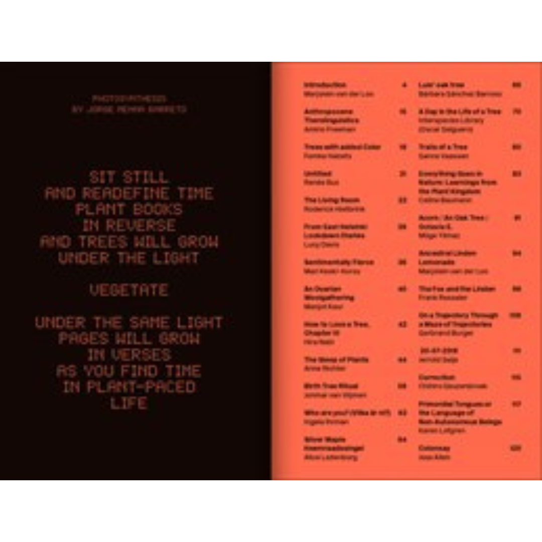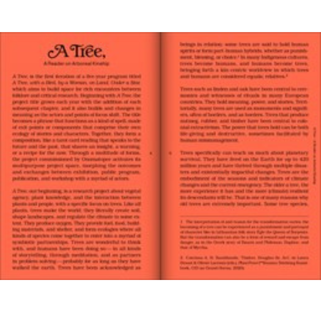 Plants make the world; they literally create soil, shape landscapes and regulate the climate to some extent. They provide oxygen, fuel, food, building materials and shelter. Is anthropomorphism a way to strengthen the connection between humans and trees or a danger that makes it impossible to acquire objective knowledge? A Tree: A Reader on Arboreal Kinship showcases research and works in which artists explore the relationship between people and trees and ways we can relate more closely to their time span. (Some species, such as pines and Japanese cypress trees, can live up to 5,000 years.) A Tree is about vegetal agency, plant knowledge and the interaction between plants and people. The aim of this reader is to nurture and encourage dialogues and to share inspiration on exercising arboreal kinship by taking the time to think about trees differently.