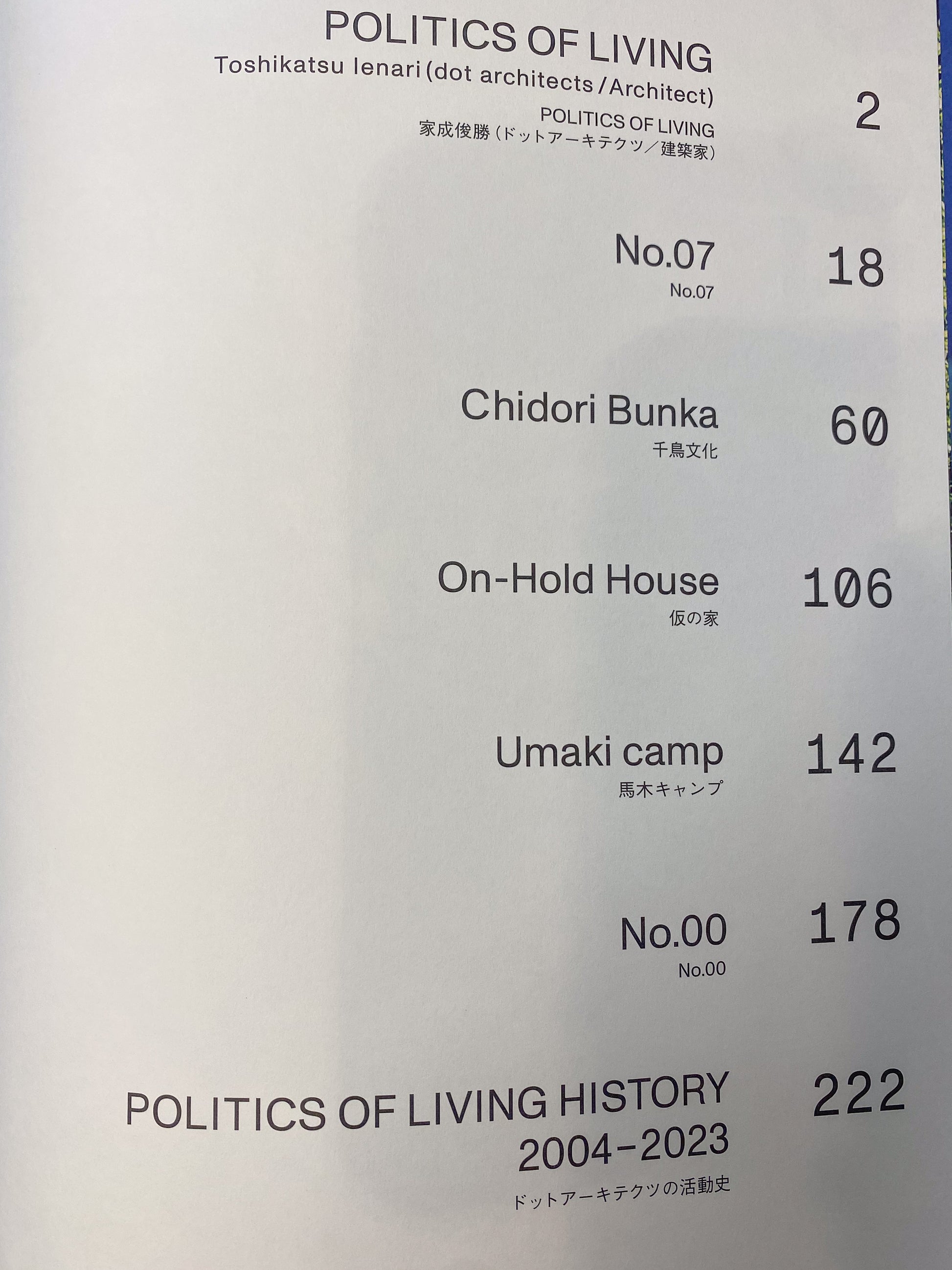 Based in Osaka, dot architects is an interdisciplinary practice with a portfolio that spans architecture, research, art, and more. This volume features five of the studio’s completed projects. Images which portray the projects in their current state are complemented by texts outlining the history and background of each structure and the surrounding town. As a whole, it gives a detailed insight into the properties which acutely reflect the “politics of living” – critical faculties needed to create small autonomous spaces through design, construction, and involvement, which in turn shapes the principle the architects describe in this book and adhere to in their daily practice.