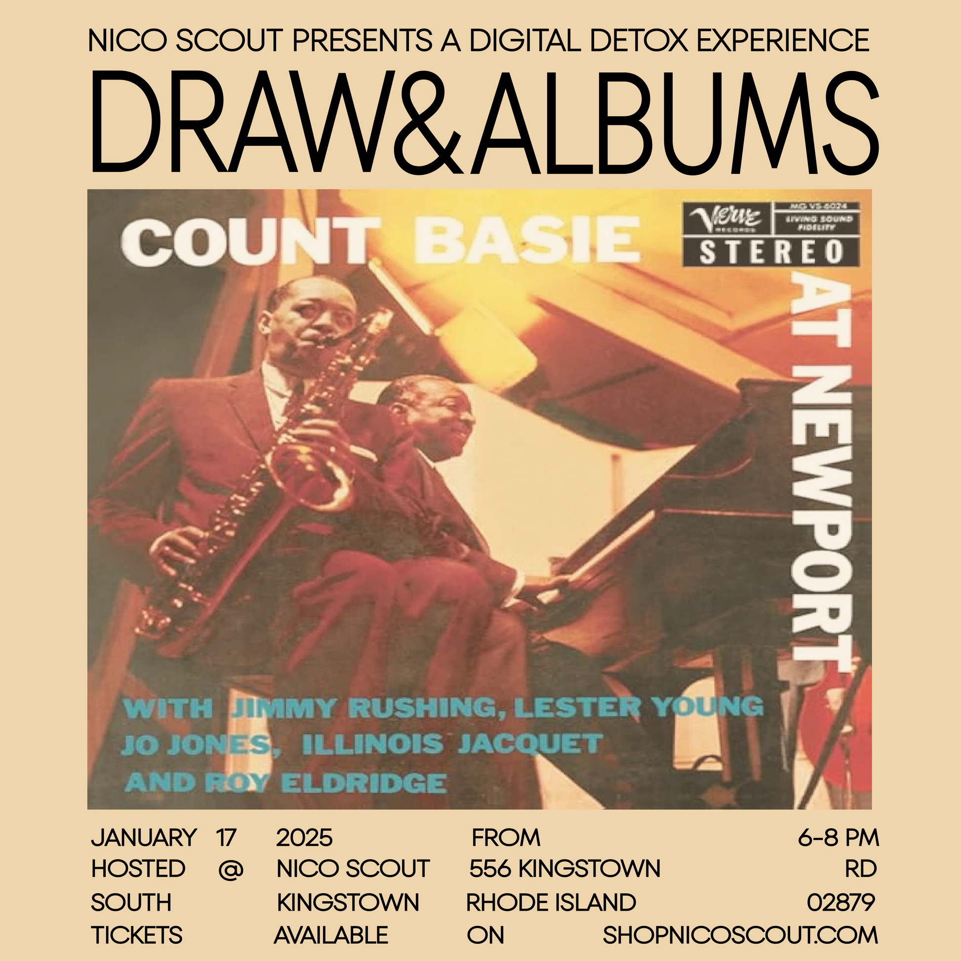 For this event, we’ll set the tone with two albums from the Newport Jazz Festival—Ray Charles’ 1958 live performance and Count Basie’s 1957 live set. With dim lighting and an inviting atmosphere, we’ll create the perfect space to inspire creativity and connection.
