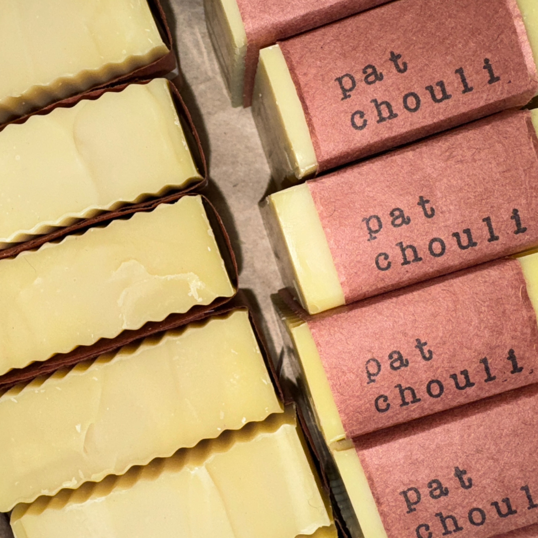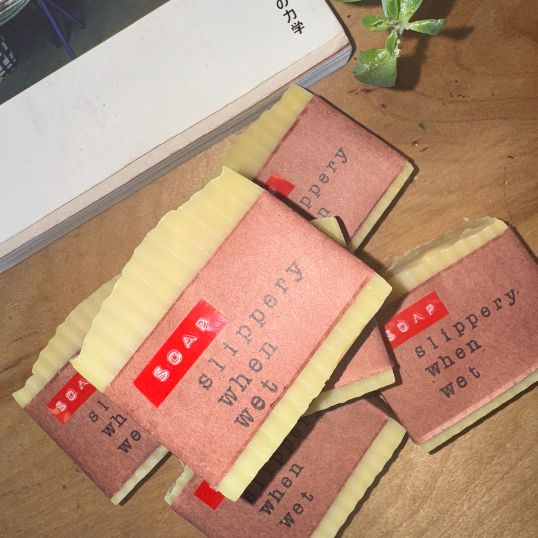 Subpar Slippery When Wet everyday softening bar soap is made with 4 simple ingredients: coconut oil, shea butter, water, and lye. No skin dryness. Subtle scent of patchouli.