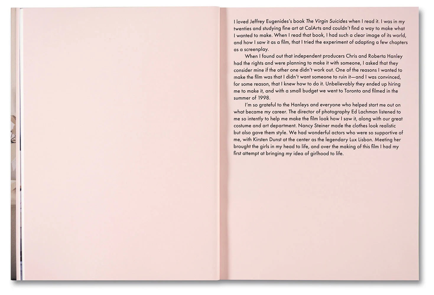Mapping a course from The Virgin Suicides (1999), through Lost in Translation (2003) and Marie Antionette (2006), to The Beguiled (2017) and her upcoming feature Priscilla (fall 2023), exploring Priscilla Presley's early years at Graceland, this luxurious volume reflects on one of the defining and most unmistakable cinematic oeuvres of the twenty-first century.