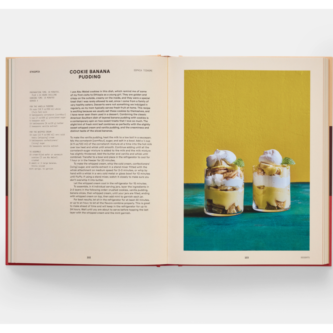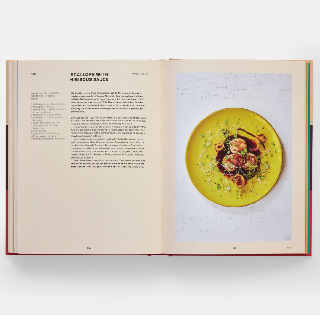 Chefs and countries featured: Zein Abdallah (Uganda); Agatha Achindu (Cameroon); Eric Adjepong (Ghana); Ikenna Akwuebue Bobmanuel (Nigeria); Clara Kapelembe Bwali (Zambia); Akram Cherif (Tunisia); Agness Colley (Togo); Moustafa Elrefaey (Egypt); Arnaud Gwaga (Burundi); Mohamed Kamal (Egypt); Kudakwashe Makoni (Zimbabwe); Dieuveil Malonga (Republic of Congo); O’miel Moundounga (Gabon); Mwaka Mwiimbu (Zambia); Joseph Odoom (Ghana); Forster Oben Oru (Cameroon); Thabo Phake (South Africa); Mostafa Seif (Egypt); Mogau Seshoene (South Africa); Sifo Sinoyolo (South Africa); Mame Sow (Senegal); Sophia Teshome (Ethiopia); Pierre Thiam (Senegal); Roze Traore (Côte d’Ivoire); Matse Uwatse (Nigeria); Alfonso Videira (Angola); Nana Araba Wilmot (Ghana); Rubia Zablon (Kenya).